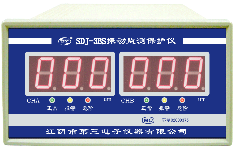 SDJ-3BS(3LS)型振動(dòng)監(jiān)測(cè)保護(hù)儀,屬通用型儀表,采用標(biāo)準(zhǔn)機(jī)箱構(gòu)成,每個(gè)監(jiān)測(cè)器中有A、B兩個(gè)通道,獨(dú)立的LED顯示方式。獨(dú)立的4~20mA輸出,獨(dú)立的開關(guān)量輸出。對(duì)旋轉(zhuǎn)機(jī)械來說衡量其全面的機(jī)械情況,轉(zhuǎn)子的振動(dòng)幅度或烈度是兩個(gè)基本的指標(biāo)。